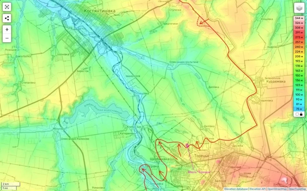 Аналогичные действия производятся и в районе Щербиновки и на территории между нею и Торецком.
