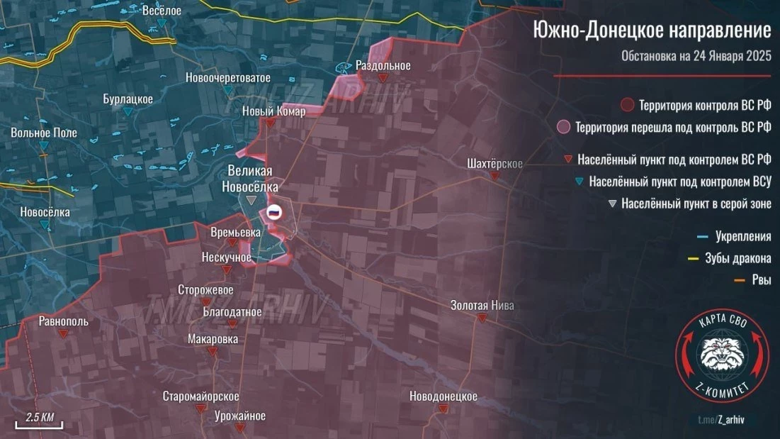 Новая карта боевых действий в зоне СВО по данным на 25.01.2025