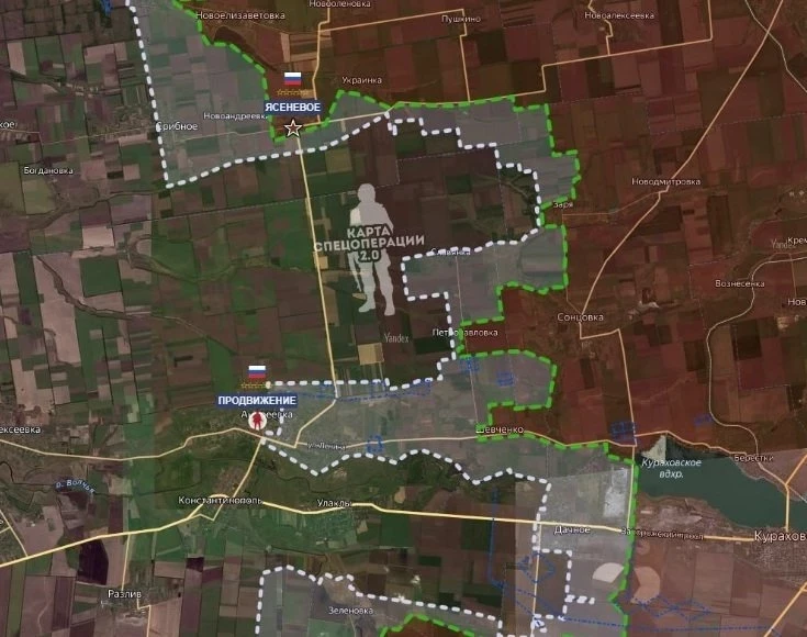 Южнее реки Солёной атакующие действия ВСУ пока не фиксируются, что позволяет предположить их подготовку к масштабному удару. На юго-западе Покровского направления российские войска развивают наступление в сторону Новопавловки (Днепропетровская область), продвигаясь от Успеновки к Новоалександровке. Одновременно с двух направлений - от Надеждинки и Серебряного - идёт наступление на село Запорожье.