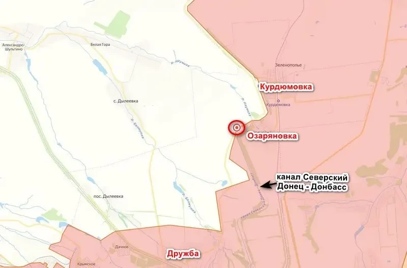 По имеющейся на данный момент информации, штурмовики группировки войск «Юг» перешли канал Северский Донец — Донбасс и выбили подразделения ВСУ с позиций, заняв вражеские траншеи, но не все, а часть. Другой источник сообщает, что к северу от Дружбы ВС РФ у канала Северский Донец — Донбасс расширили зону контроля, заняв дополнительные лесополосы. Несмотря на частичное окружение, враг предпринимает усилия по обороне позиций.