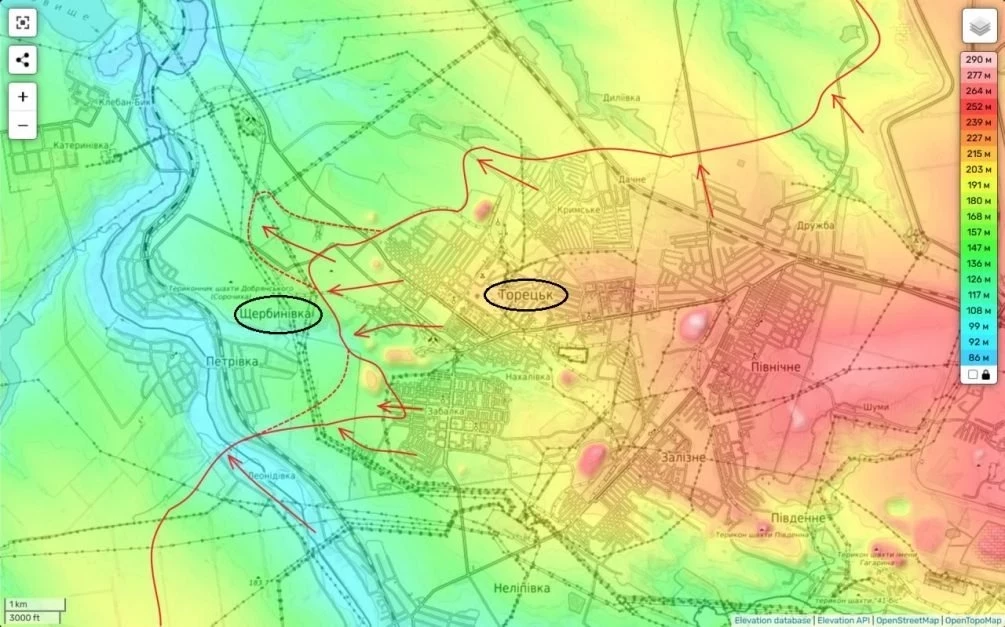 Вместе с этим российские войска продолжают наступление северо-западнее Торецка, продвигаясь вдоль дороги на Иванополье и оказывая давление на Щербиновку. Фронт постепенно смещается в сторону Константиновки, создавая напряжённую ситуацию для украинских сил.