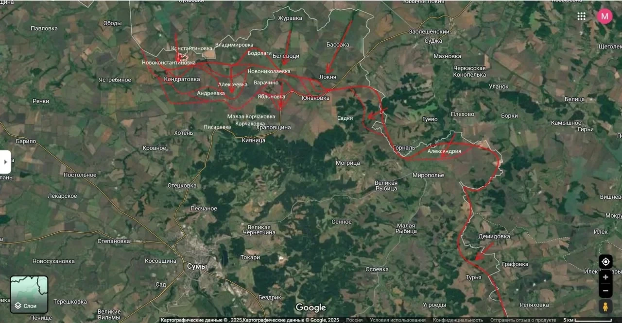 По мнению аналитика, приближение российских сил к областному центру Сум создаёт нарастающий оперативный кризис для противника.