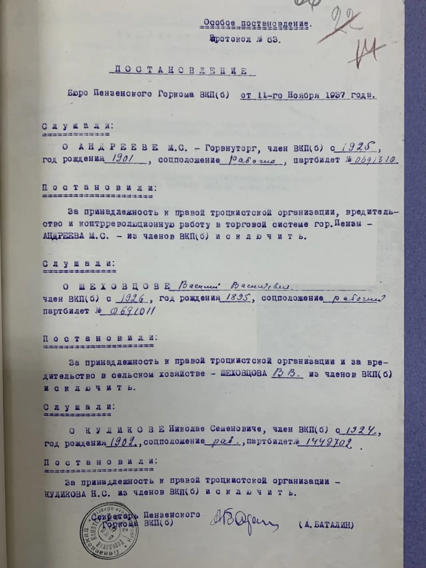Ничего особо нового найти я там не ожидал. Ну и так понятно, чему были посвящены в то время заседания бюро столь высокого уровня. Конечно же, борьбе с врагами народа, которые в тот год обнаруживались едва ли не повсеместно.