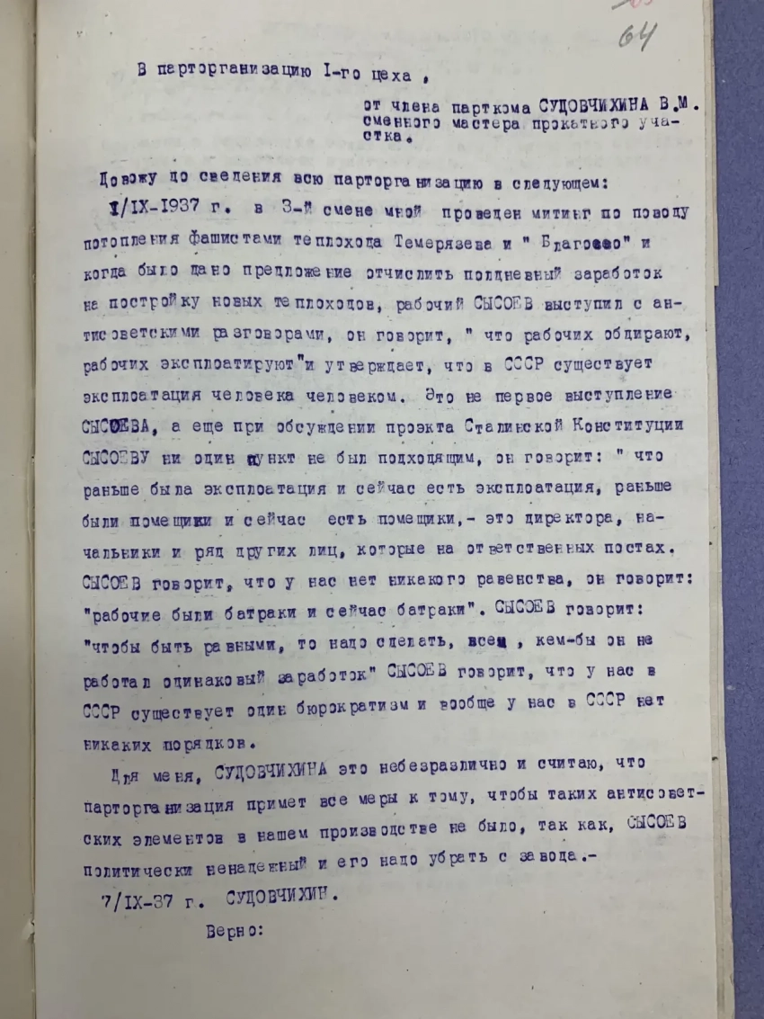 А случилась она потому, что «директор не проявил должного внимания…», а коллектив был засорен антисоветскими элементами, которые вели антисоветские разговоры.