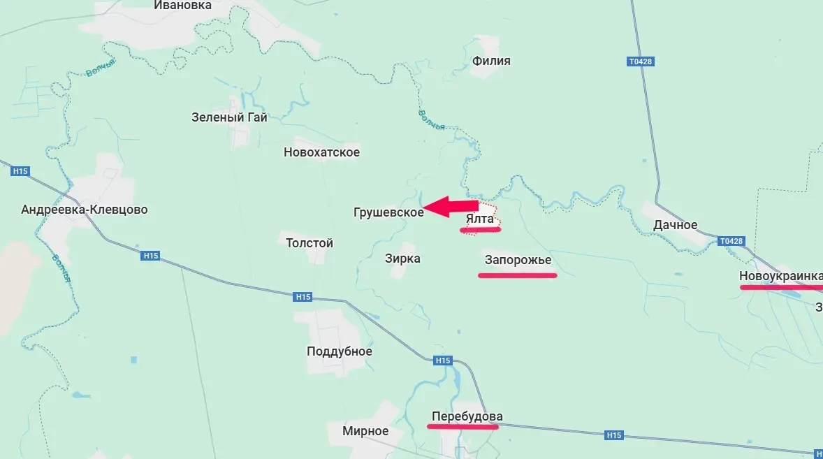 Пока же российская армия после освобождения Ялты на западе ДНР продолжает продвижение в сторону населённых пунктов Грушевское и Звезда (Зирка), что севернее дороги Н15 на Запорожье.