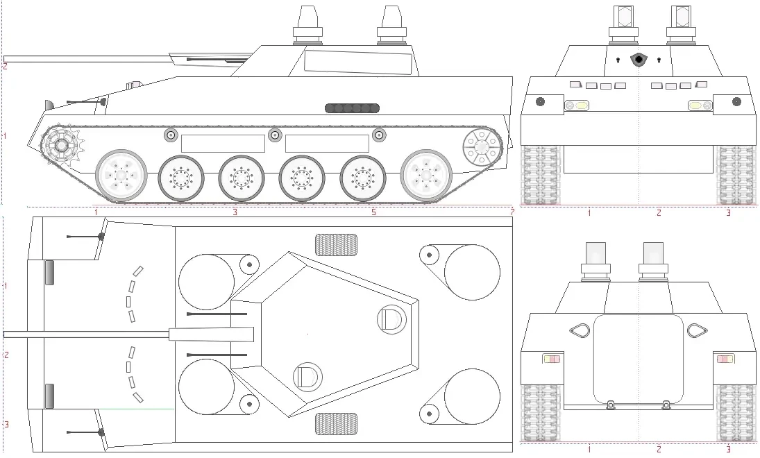 После согласования с железнодорожниками ширина отечественных основных танков увеличена по гусеницам до нулевой негабаритности, которая равна 3450 мм. Не упираясь в предельно допустимые параметры железных дорог, ограничимся выбором ширины тяжёлой БМП по гусеницам в 3400 миллиметров. Теоретически это позволит «упаковать» две машины в грузовую кабину транспортника Ил-76МД-90А. Одномоментно, чтобы не допустить роста периметра выше, чем у БМП-3, добровольно-принудительно сократим длину машины до 7 метров. Таким образом, по параметру удельного бронирования новая ТБМП уступит только последнему немецкому свежачку!
