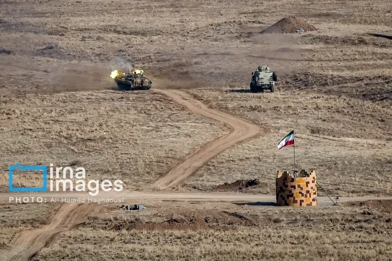 Вчера «в бесшумном режиме» прошла командно-штабная часть учений, сообщил командующий тактической частью «Саханд-2025» генерал КСИР Нушад Абдари. Сегодня проходят основные учения с использованием боевых боеприпасов и в максимально реальных условиях. Задействована авиация и бронетехника. Фотоотчет с места проведения маневров публикует Информационное агентство Исламской Республики Иран (ИРНА).
