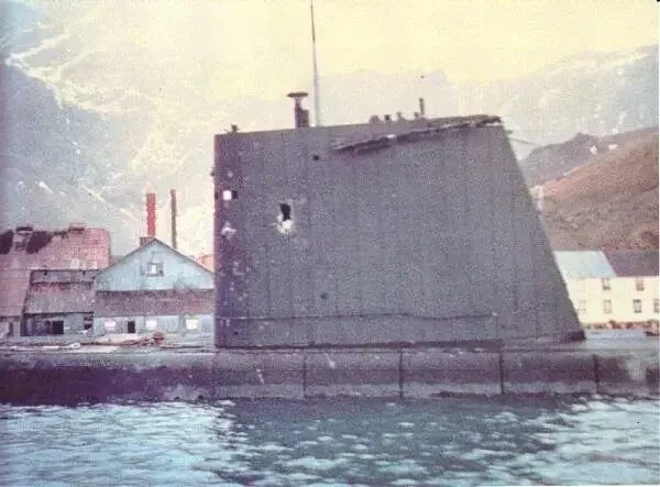 «Санта-Фе» беспрепятственно высадила подкрепление в Грютвикене и, в 5 утра 25 апреля, пошла назад. В 8:55 «Антрим» и его вертолёт «Вестланд Уэссекс» обнаружили лодку и атаковали её глубинными бомбами. Бомбы пробили балластную цистерну, теперь лодка не могла погрузиться, и командир решил вернуться в Грютвикен. Тем временем лодку атаковал противолодочный вертолёт «Линкс», выпустив торпеду Мк 46, но она была настроена на поражение подлодки в подводном положении и прошла под идущей в надводном положении субмариной. Тогда с «Эндюранс» и «Плимута» вылетели вертолёты «Уосп», вооружённые ПТУРС АS-12. Первая ракета попала в ограждение рубки и повредила выдвижные устройства, вторая — не долетела до цели 30 метров. После этого вертолёт с «Плимута», который находился дальше, вернулся на корабль, а вертолёт с «Эндюранс» повторил атаки: одна ракета промазала, а вторая пробила кормовой вертикальный руль и взорвалась в море. Третья атака — одна ракета не сошла с направляющей, а вторая угодила в ограждение рубки. В конце концов, прилетел «Линкс» с «Бриллианта», обстрелявший лодку из пулемёта калибра 7,62. В общем, к 11 часам утра лодка вернулась в Грютвикен и была покинута экипажем, став, таким образом, только первой подлодкой, уничтоженной (если это можно так назвать) вертолётами.