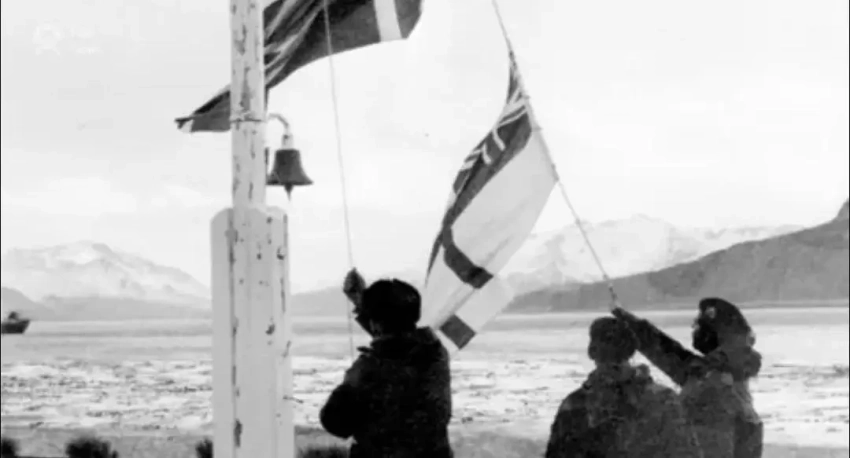 Имею честь сообщить Её Величеству, что на Южной Георгии рядом с белым британским флагом развивается Юнион Джек. Боже храни королеву.