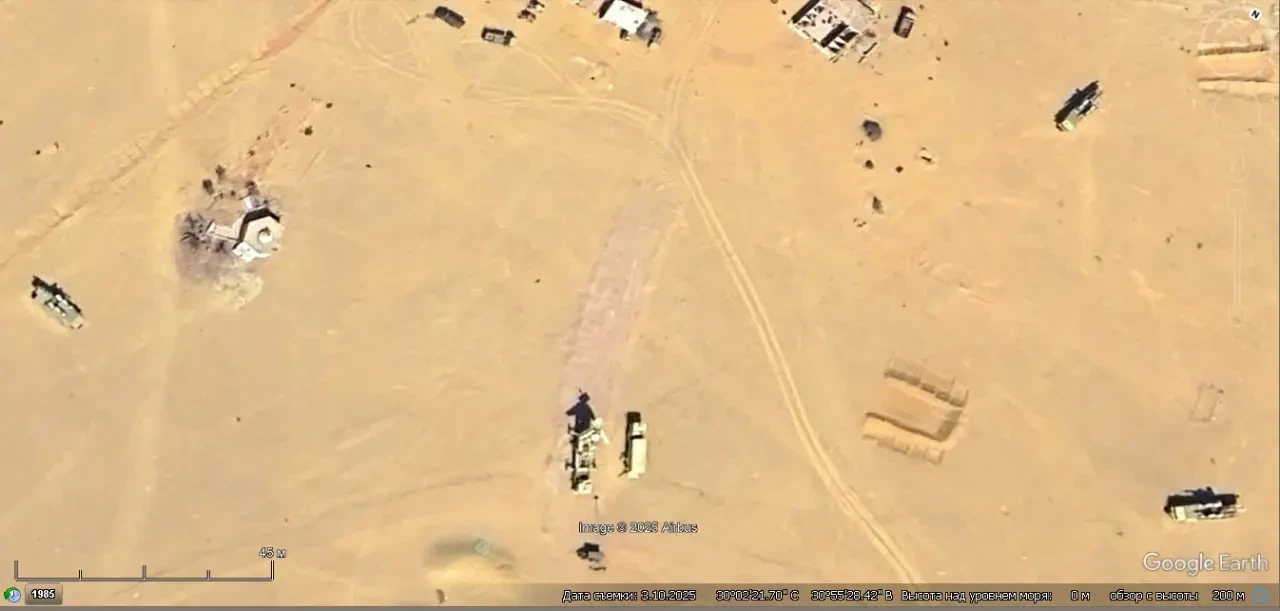 Спутниковый снимок Googlе Eаrth: позиция ЗРК С-125 неподалёку от Суэцкого канала. Снимок сделан в июне 2025 года
