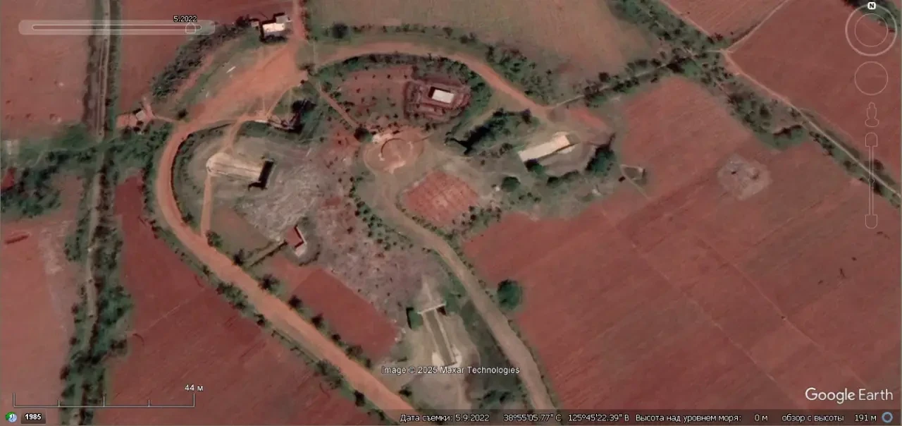 Спутниковый снимок Googlе Eаrth: позиция ЗРК С-125М1А на южной окраине Пхеньяна. Снимок сделан в мае 2022 года