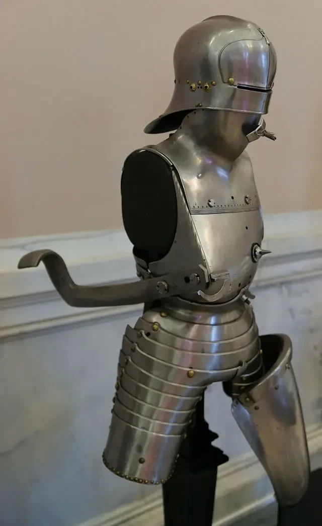Турнирный доспех 1468-1532 гг. сразу с двумя копейными крюками – передним и задним. Оружейная палата дворца Новый Ховбург, Вена. Фотография автора
