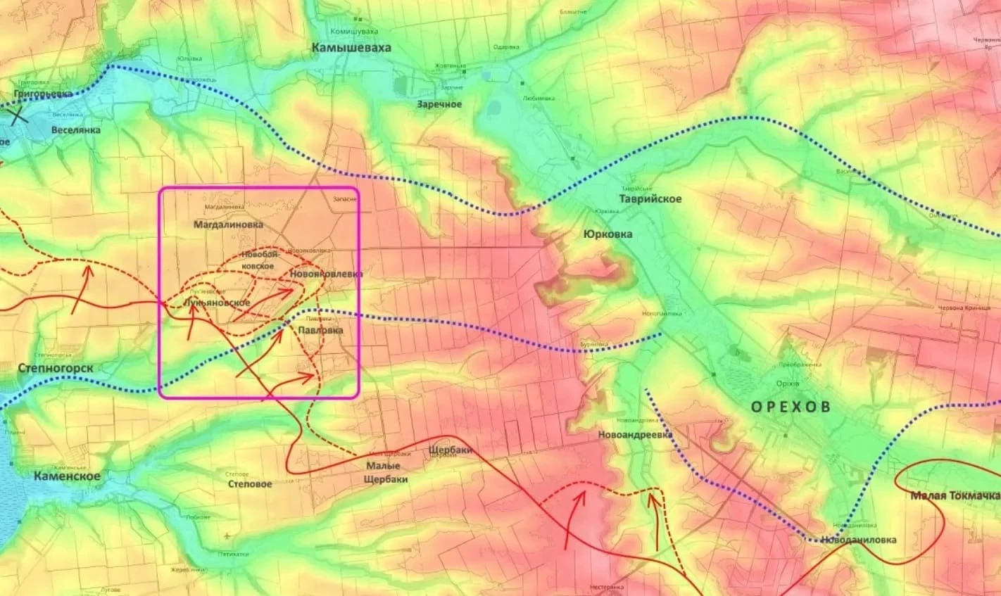 Аналитики обращают внимание на значение господствующих высот в этом районе. Контроль над ними может повлиять на устойчивость обороны украинских сил в районе Орехова и на общую конфигурацию фронта на западе Запорожской области.