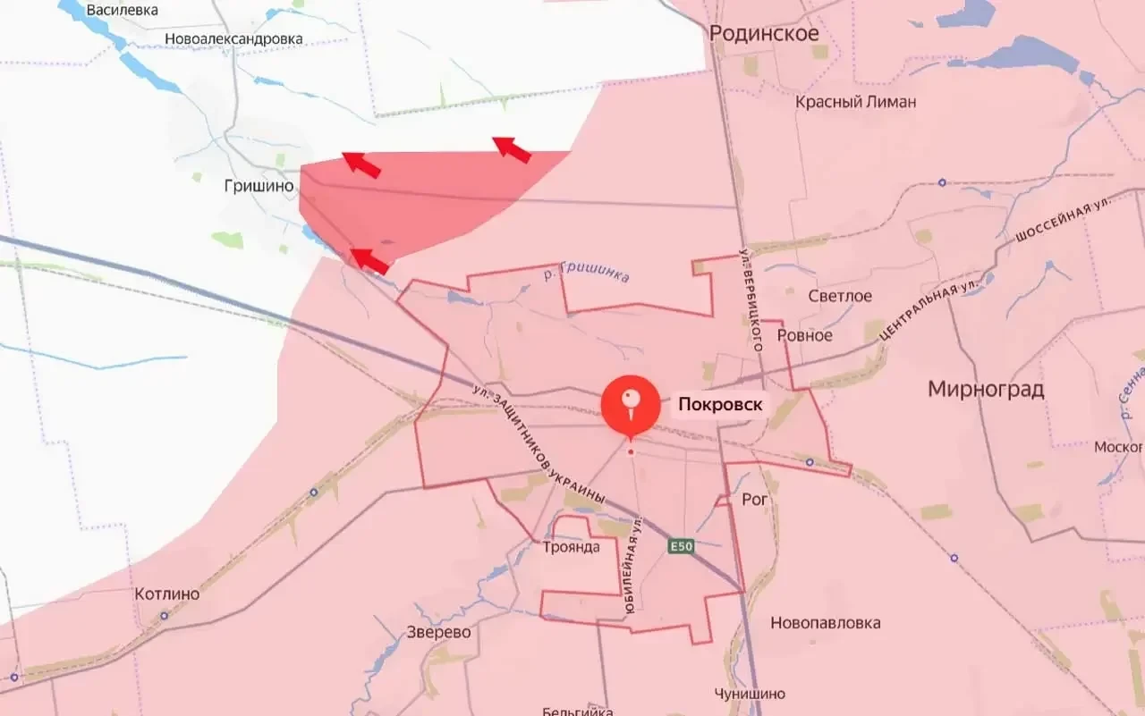 Российские войска, отразив десятки контратак противника на Покровско-Мирноградскую (Красноармейско-Димитровскую) агломерацию, перешли к новой фазе наступления. С начала суток подразделения ВС РФ продвинулись к востоку от села Гришино, одновременно с закреплением успеха в самом селе.