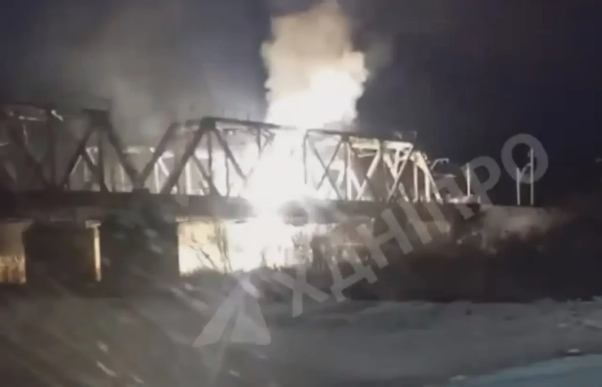 В сети опубликованы кадры, на которых запечатлены удары российских БПЛА-камикадзе семейства «Герань» по железнодорожным мостам в Сумской и Днепропетровской областях.
