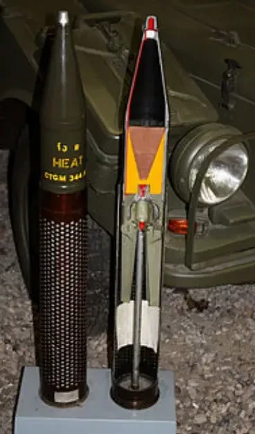 Граната калибром 75 мм весила 645 г и содержала 180 г взрывчатого вещества Composition B (смесь гексогена с тротилом). С каждой гранатой, поставляемой в войска, в специальном футляре шел холостой патрон и складной пластмассовый рамочный прицел, рассчитанный на дальность от 25 до 100 м. При транспортировке чувствительный пьезоэлектрический взрыватель прикрывался съёмным пластиковым колпачком.