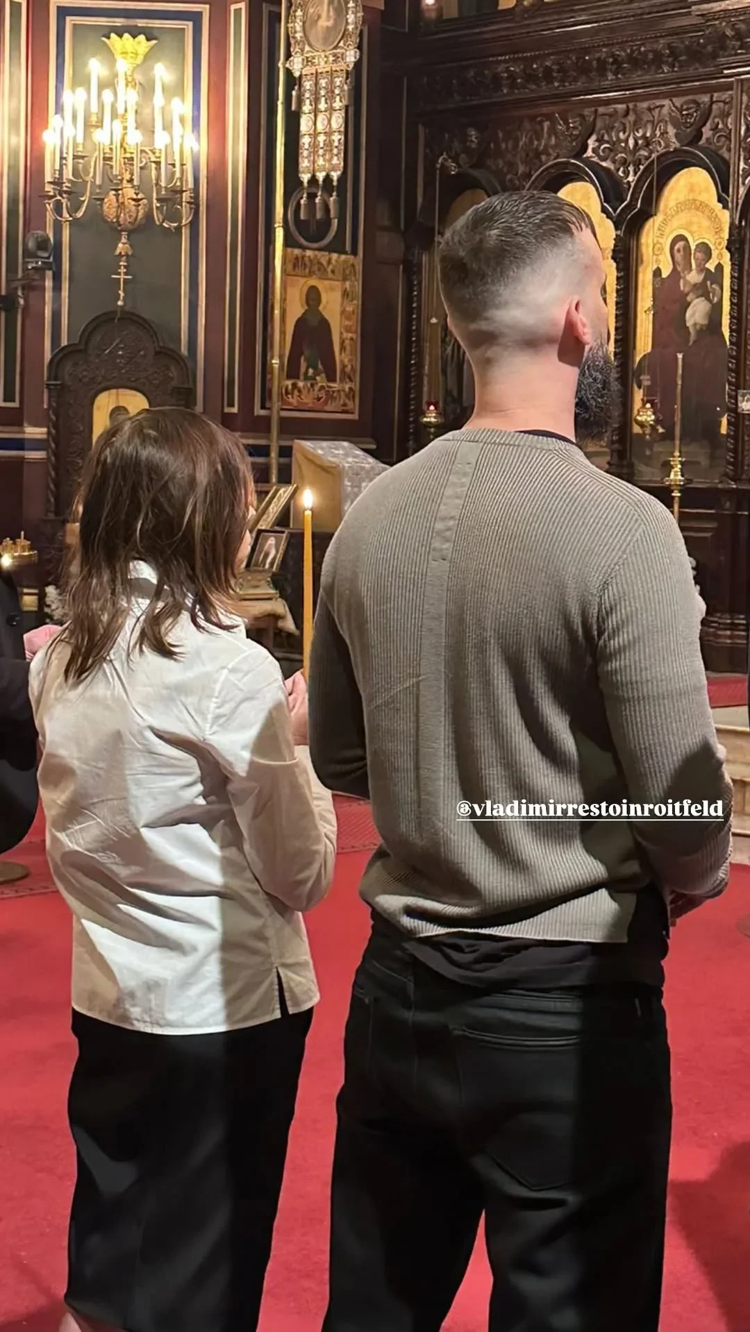 Фото Карин Ройтфельдhttps://t.me/spletnik2006/47709Известно, что обряд состоялся в соборе Александра Невского в столице Франции — историческом центре местной русской православной общины. Крёстным 41-летнего Владимира стал его друг детства Александр Песко, а у Карин — продюсер Алексей Киселёв. На крещении также присутствовала её дочь, 45-летняя модель и дизайнер Джулия.