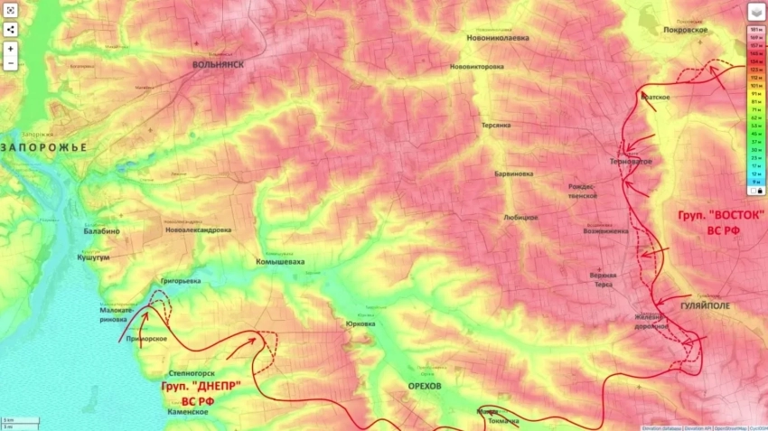 2. Продвижение к южным окраинам Запорожья, до которых после взятия Речного осталось около 12 километров.