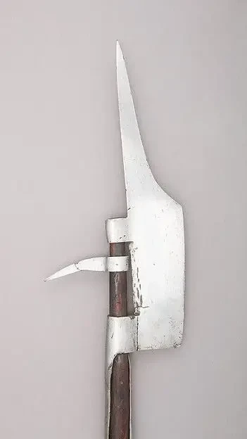 Поллэкс. Оружие похожее на алебарду, но не алебарда. У поллэкса острие представляет собой отдельную деталь, а вместо крюка имеется молоток с граненой поверхностью. Метрополитен-музей, Нью-Йорк