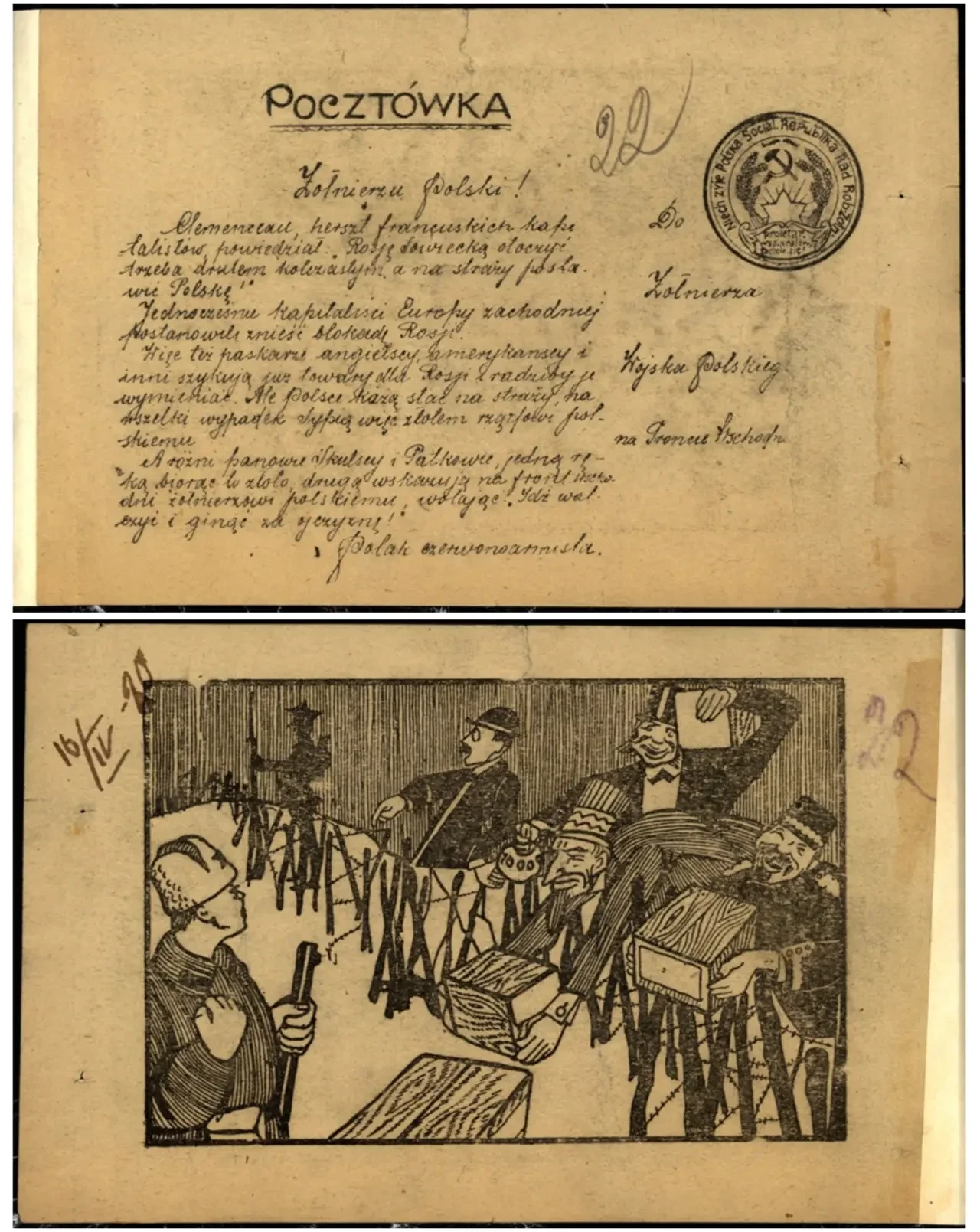 Листовка — открытка с обращением к польским солдатам. Архив РГАСПИ: Ф. 104. Оп. 1. Д. 18. Л. 22–22.