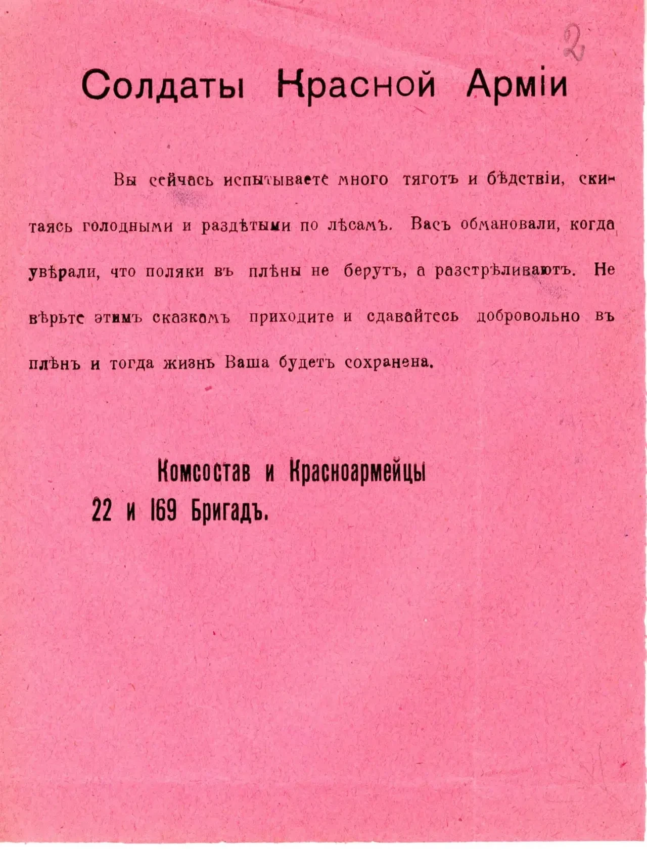 Польская листовка, написанная от имени пленных красноармейцев.