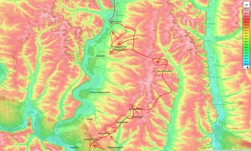 Значимые изменения происходят и севернее. Российские войска, опираясь на освобождённую Липовку, дожимают противника во Второй Фёдоровке и зачищают балки к югу от Александровки.