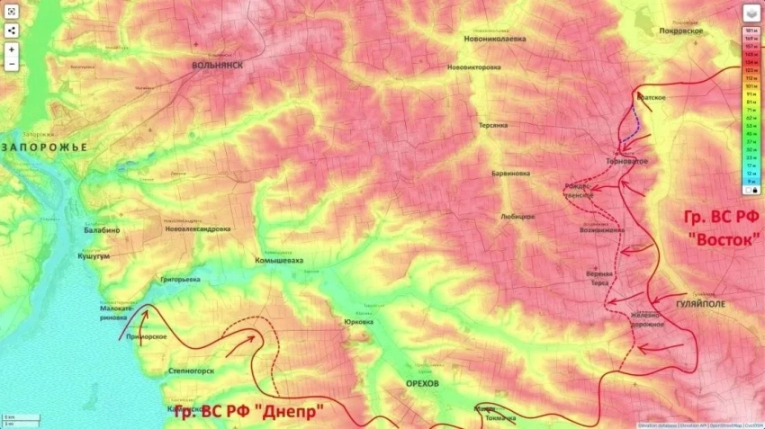 В перспективе, считает блогер, может рассматриваться вариант охвата Ореховской группировки и дальнейшего продвижения в сторону Запорожья. По его словам, такой сценарий возможен при условии подготовки соответствующей оперативной базы.