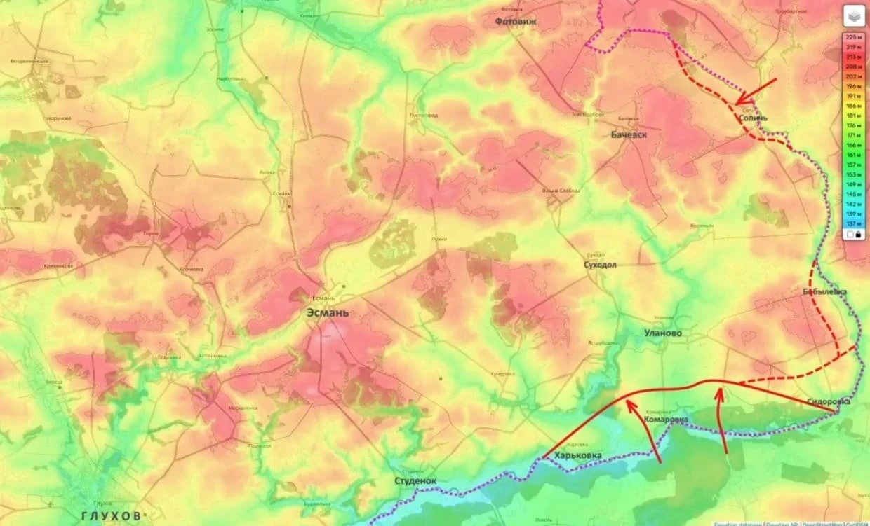 «Наши подразделения полностью заняли населённый пункт Сопычь и, таким образом, пытаются выйти на линию Бачевск - Уланово», - уточнил блогер.