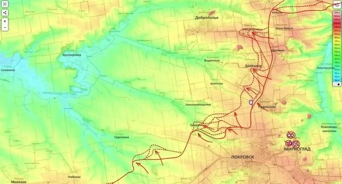 Крупный посёлок городского типа Гришино (северо-западнее Покровска и Мирнограда) полностью перешел под контроль ВС РФ. Операция была проведена образцово: северную часть населенного пункта зачистили десантники, а южную взяли мотострелковые части. Сейчас идет ликвидация последних очагов сопротивления в подвальных помещениях и закрепление сил на новых рубежах.