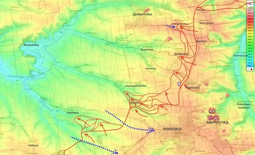 Внимание, угроза: По данным радиоперехватов и визуального контроля, командование ВСУ готовит на этом участке упреждающий контрудар. В западные предместья Покровска стягиваются подразделения 7-го штурмового корпуса ВСУ. Их очевидная цель - ударить во фланг и тыл нашей наступающей группировке в районе Гришино и Доброполья.