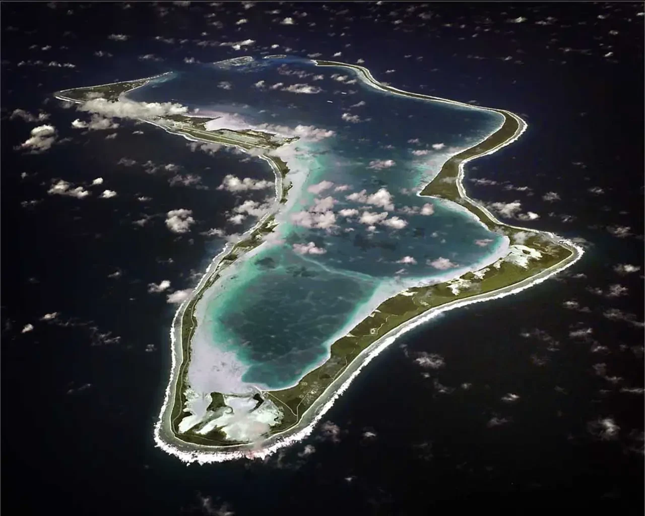 Остров Диего Гарсия. Слева видны аэродром и военно-морская база
