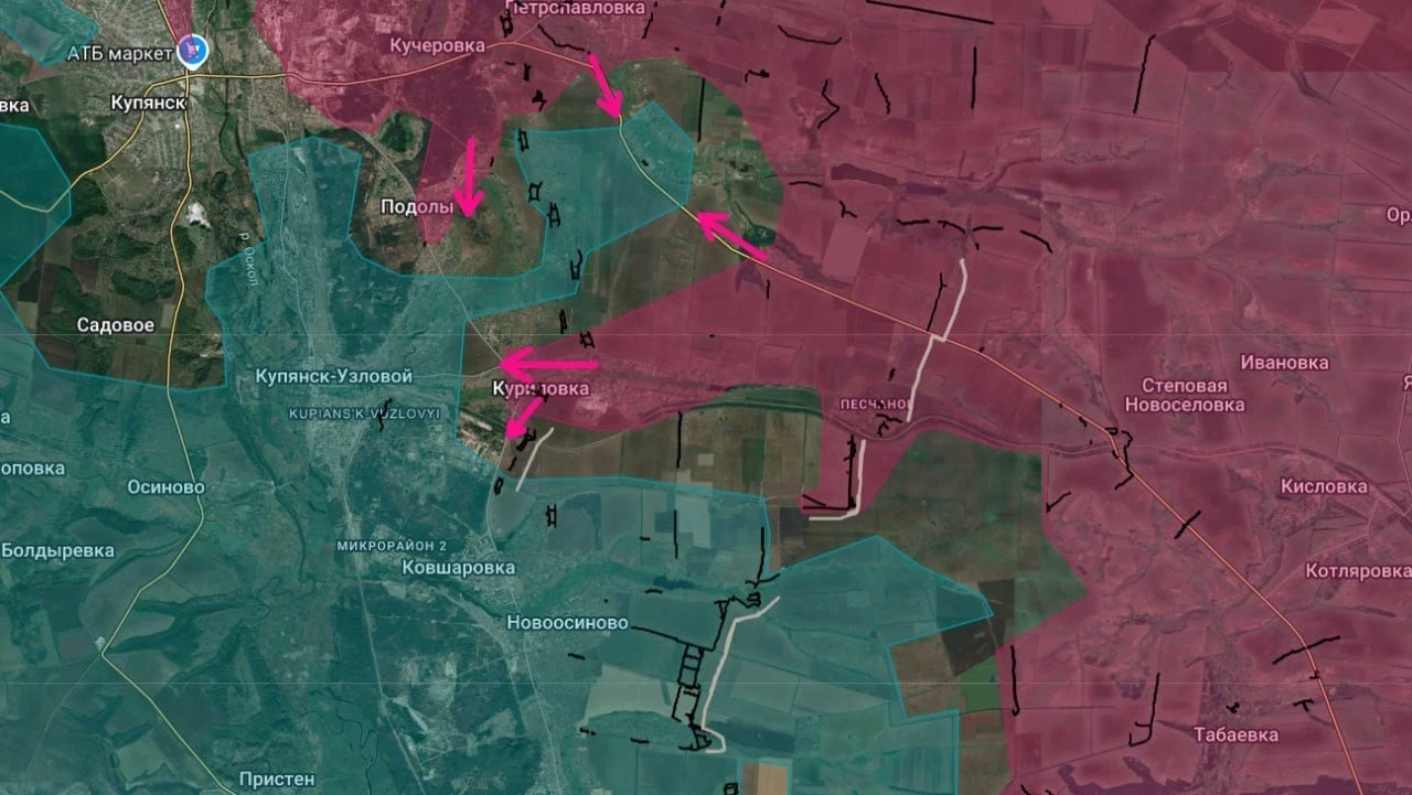 На Купянском фронте активно применяются дроны, артиллерия и авиация. Купянск остается серой зоной, ВС РФ оформляют охват Купянск-Узлового с продвижением у Куриловки и Ковшаровки. На участке Хатного - Григоровки российские войска занимают позиции по лесополосам. Продолжаются бои за Петропавловку и Подолы с зачисткой в Куриловке. Купянское направление восточный берег Оскола показывает успехи российских штурмовиков.