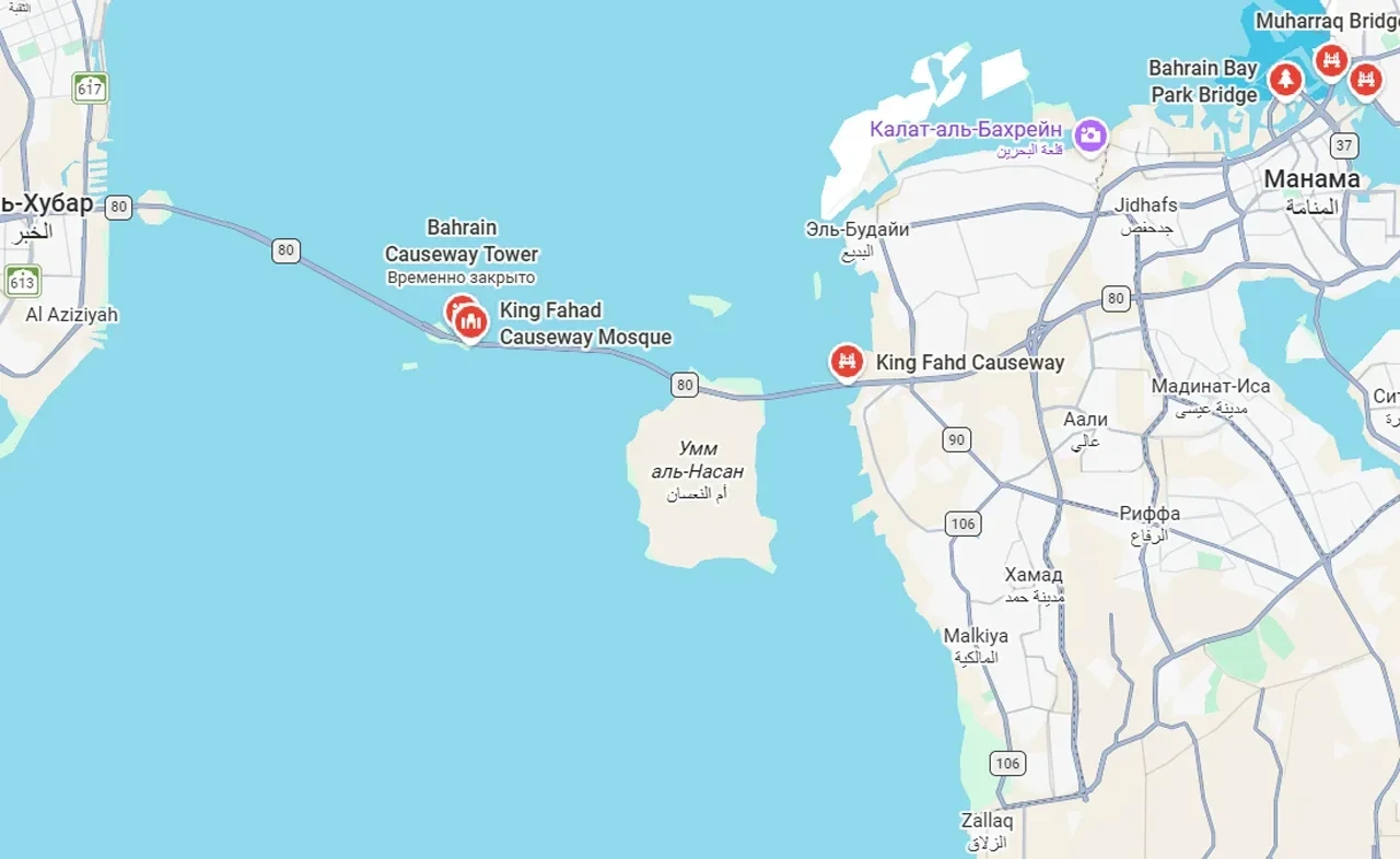Власти Саудовской Аравии приостановили движение по мосту, соединяющему страну с Бахрейном. Это мост короля Фахда. Общая протяжённость моста, вместе с плотинами, составляет 25 км. Открыт для движения он был ровно 40 лет назад – в 1986 году. Мост возвышается в центральной части для обеспечения судоходства