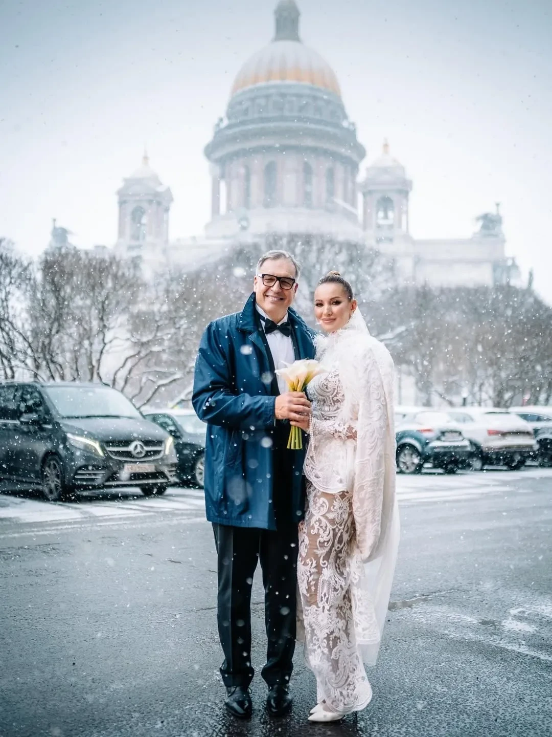 Невеста была в платье от дизайнера Александра Сирадекиана. Бракосочетание прошло в популярном среди селебрити Дворце бракосочетания № 1 на Английской набережной Санкт-Петербурга. Молодожёны также устроили фотосессию в местном пятизвёздочном отеле "Астория" и посетили храм.