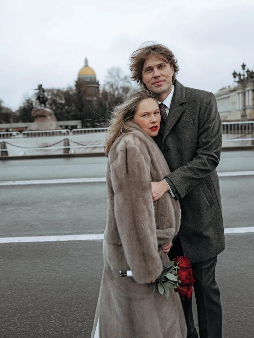 Пара расписалась в Дворце бракосочетания № 1 в Санкт-Петербурге. Невеста была в белом платье с вафельной текстурой, чёрных ботильонах и шубе, а жених — в сером костюме с удлинённым пиджаком. "В этом году я успела всё!" — подписала публикацию Янковская.