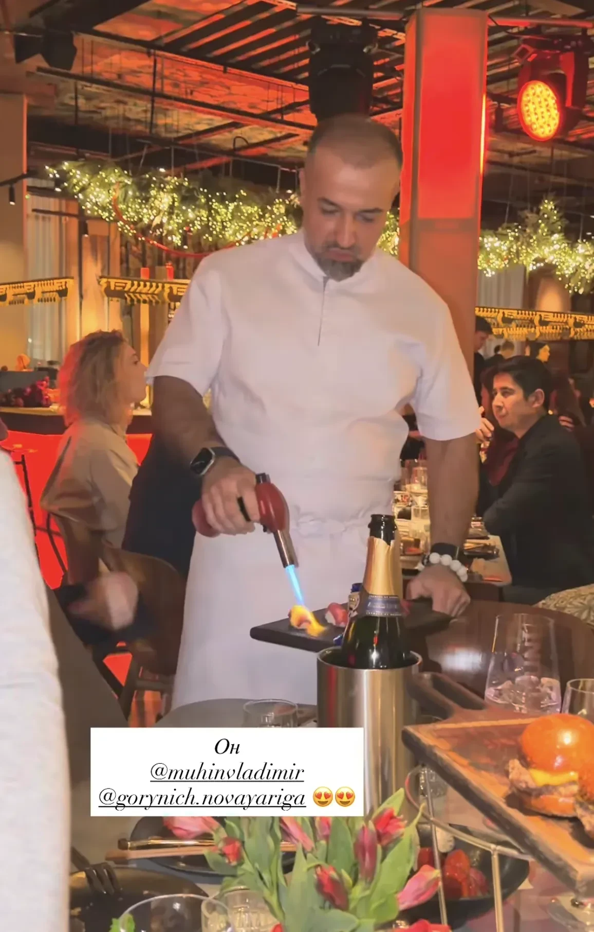 Гостей вечера ждали праздничный ужин от шеф-повара Владимира Мухина, выступление группы "Фабрика" и масштабная вечеринка. В начале вечера, в честь открытия нового ресторана, Ирина Зарькова разбила тарелку о пол на удачу.