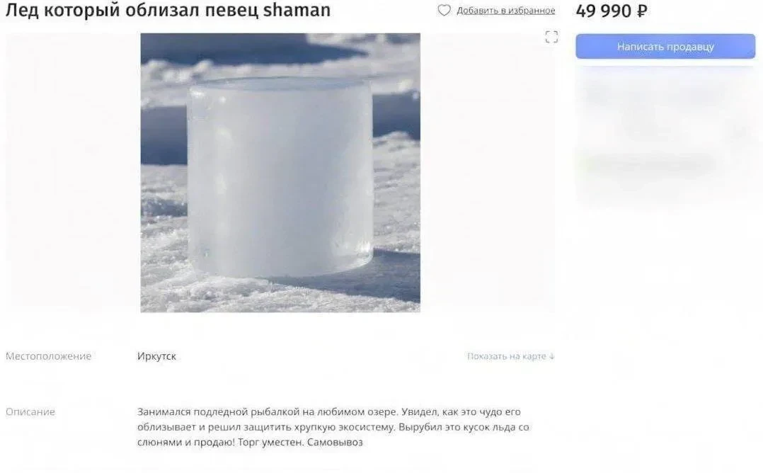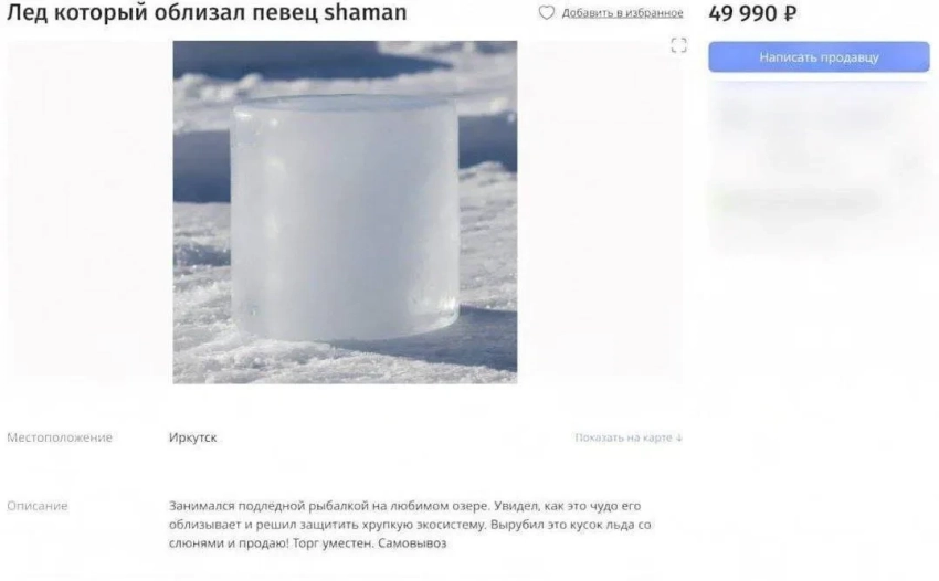 Мем про ШаманаТем временем на Avito уже нашли объявление о продаже "того самого" участка льда. Приобрести "хрупкую экосистему" продавец предлагает за почти 50 тыс. рублей.