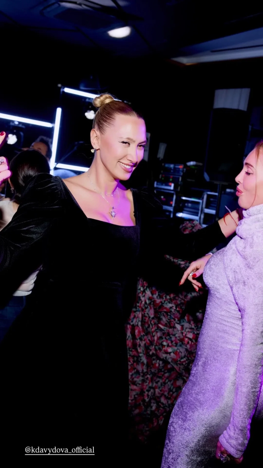 Буре сидела за одним столиком с Яной Рудковской и, судя по всему, пребывала в хорошем расположении духа: активно фотографировалась с другими гостьями и танцевала.