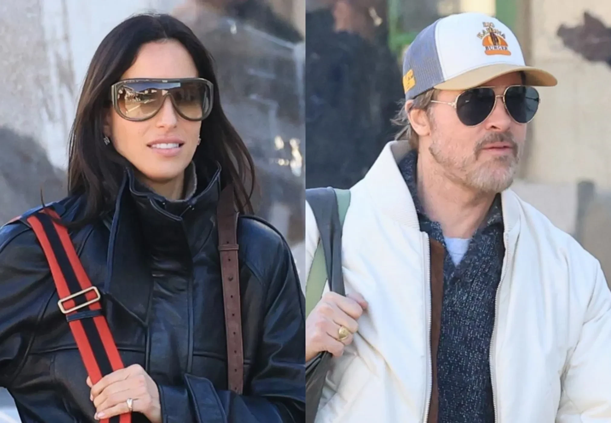 Для долгой дороги 62-летний Питт выбрал расслабленный образ: он был в белом бомбере, сером джемпере, джинсах оверсайз и бейсболке. 33-летняя де Рамон тоже предпочла повседневный стиль, надев чёрную кожаную куртку и бежевые брюки. В качестве аксессуаров они оба добавили солнцезащитные очки.