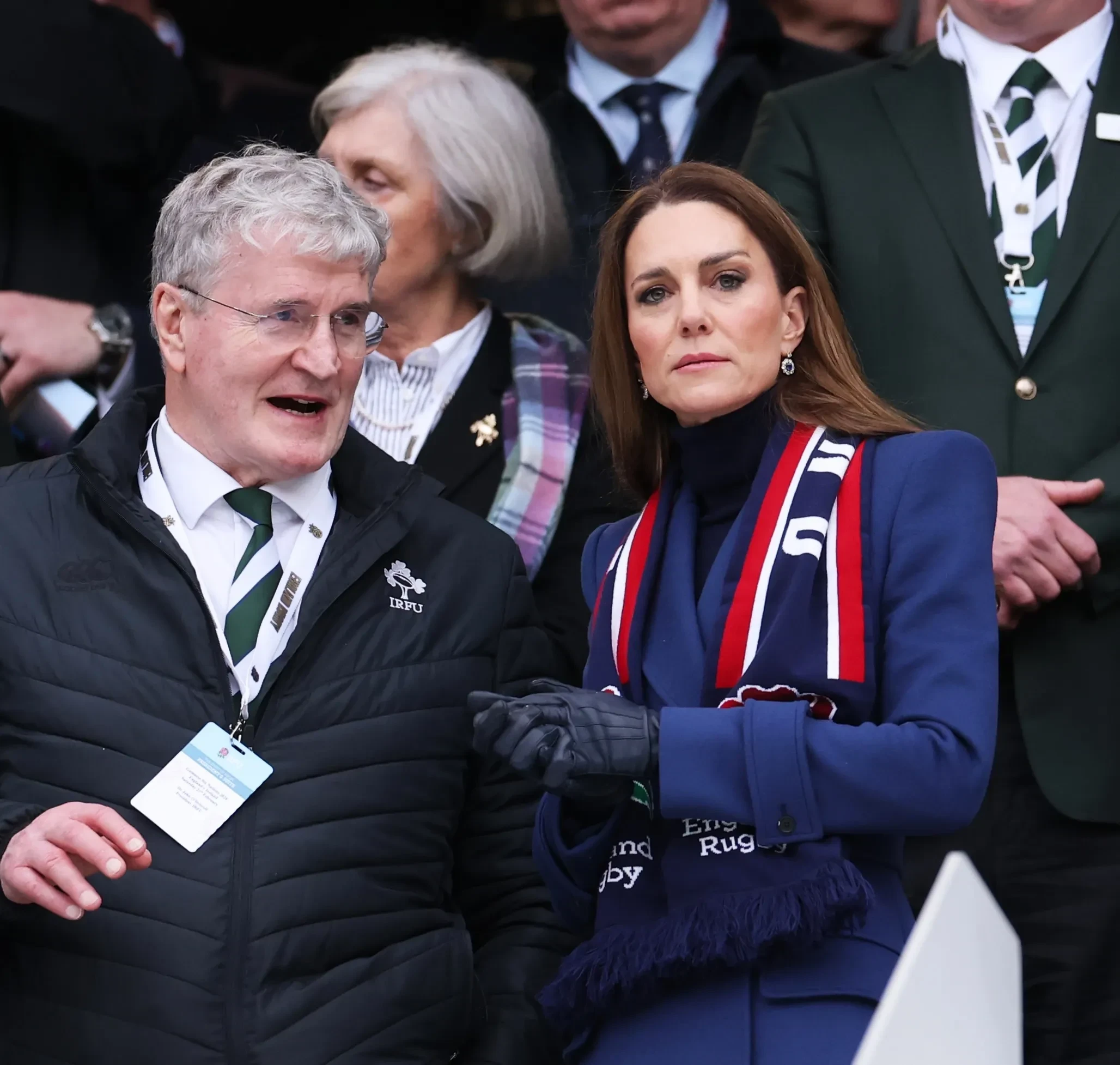 Джон О'Дрисколл (президент Ирландского союза регби) и Кейт Миддлтон