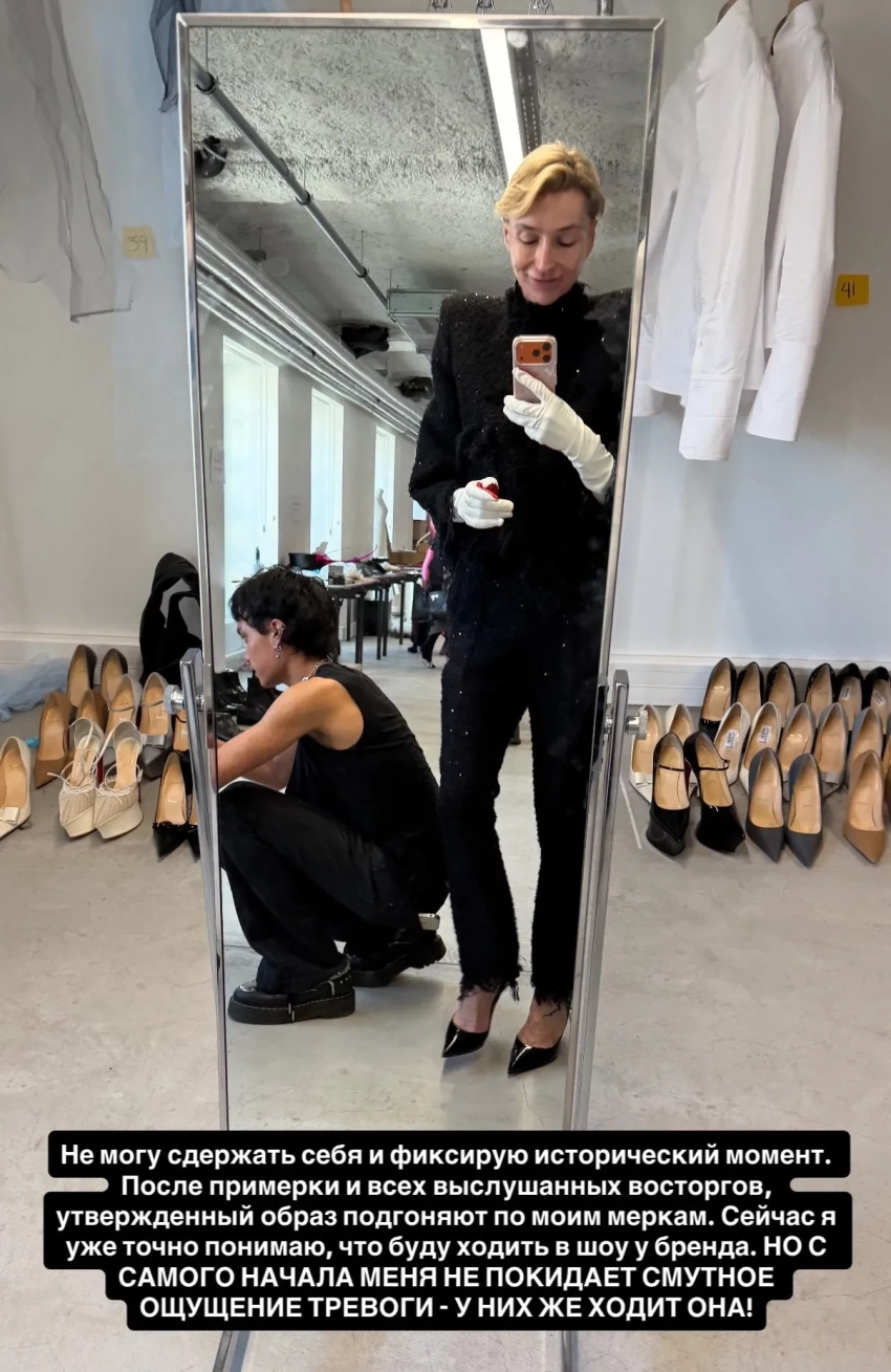 После этого модель и светская львица опубликовала образ Литвиновой с показа и призналась, что этот наряд она надевала на примерке.
