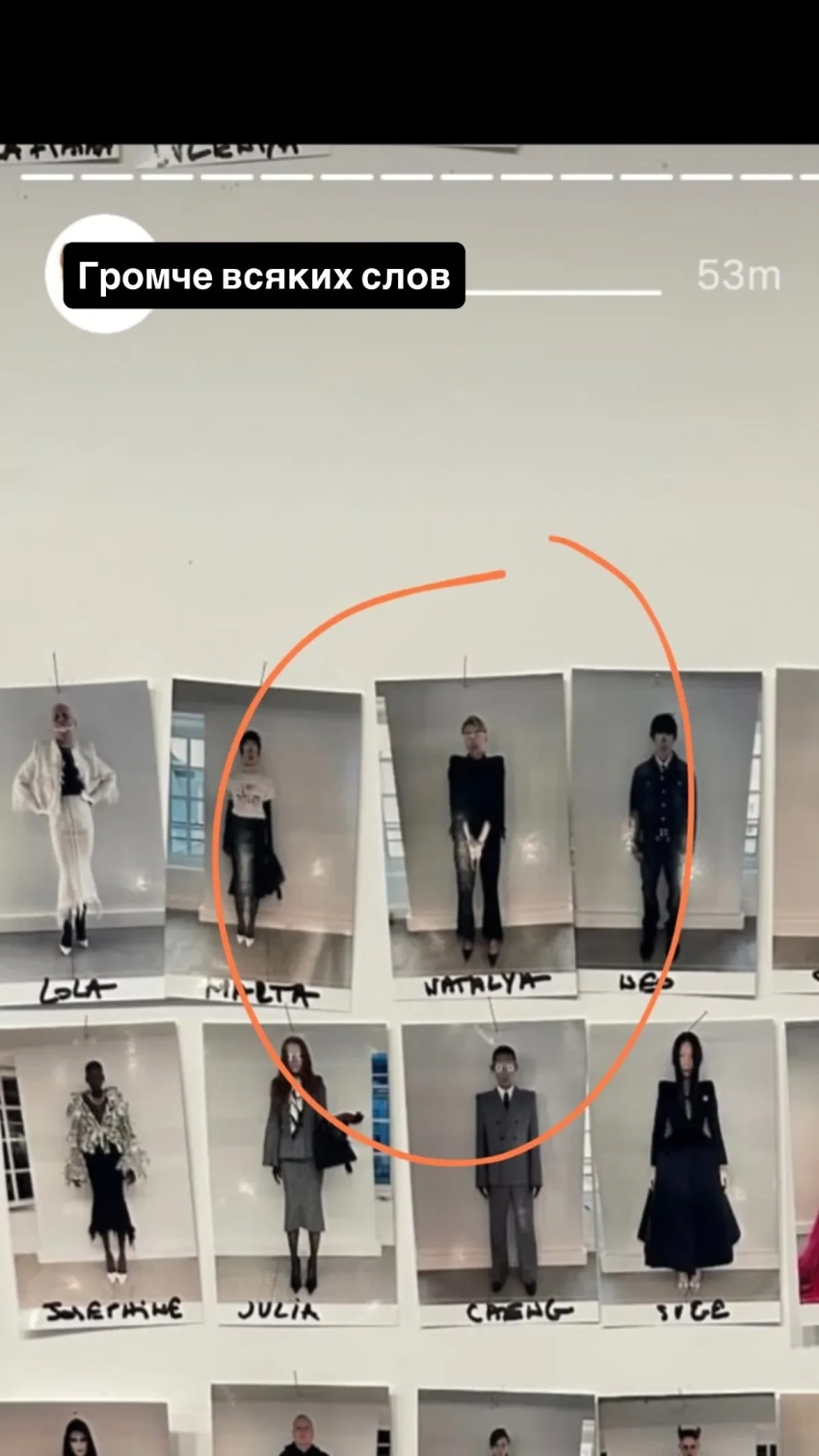 Подтверждение участия Натальи Максимовой в шоуБуквально через 20 минут после письма с подтверждением Наталье приходит сообщение о том, что её участие в шоу аннулировано. Она назвала эту ситуацию "тотальным бредом", потому что якобы вокруг её образа построена идея коллекции о "первертивности буржуазии". Максимова также намекнула, что за наём моделей на показе отвечает тот же человек, который ранее работал в Balenciaga. "Кастинг-директор данного шоу отвечал последние несколько лет за кастинг бренда, в котором всегда ходила она. Да-да, тот самый, который начинается на вторую букву алфавита".