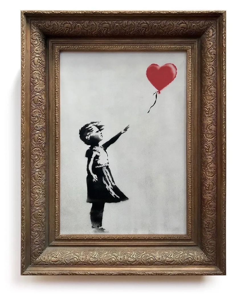 Бэнкси получил мировую известность благодаря своим сатирическим граффити, выполненным в технике трафаретной печати. Его работы, богатые чёрным юмором, — это острые комментарии к социальным и политическим проблемам: критика общества потребления, призывы к защите экологии и прав человека. Среди самых узнаваемых его творений — "Девочка с воздушным шаром", которая в 2018 году самоликвидировалась на аукционе Sotheby's сразу после продажи, превратившись в новый арт-объект "Любовь в мусорном баке" и мгновенно взлетев в цене.