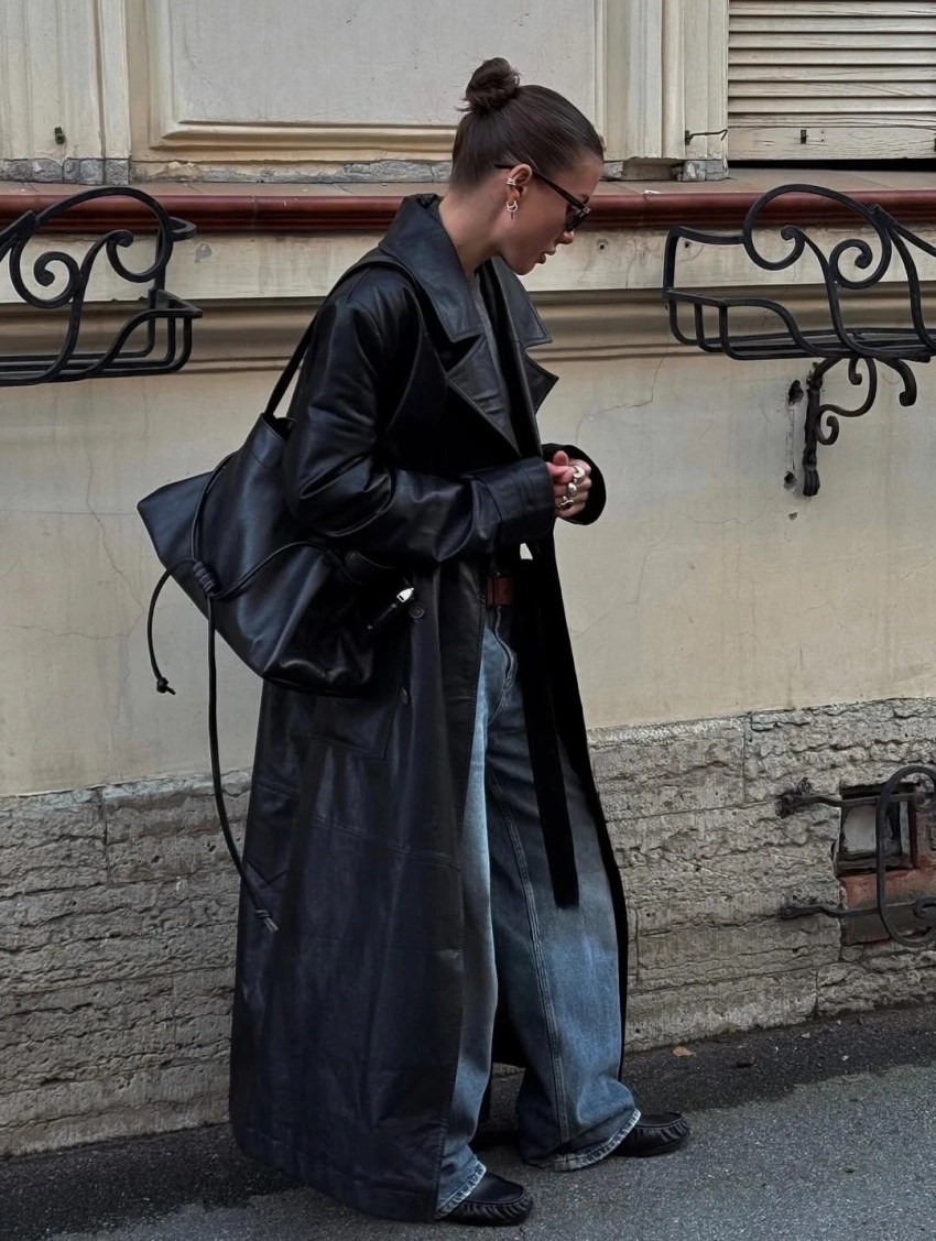 Её фишка — двойная сущность: модель можно носить кожаной стороной или тканевой, меняя настроение образа.