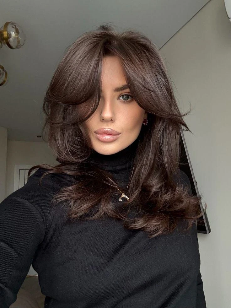 Такая форма отлично подходит для средних и длинных волос и регулярно попадает в подборки «модные стрижки 2026 женские на средние волосы». Волосы выглядят ухоженными даже без укладки, а черты лица становятся мягче.