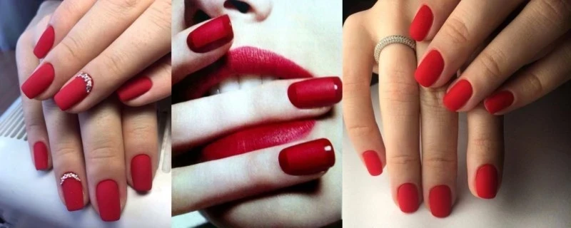 Текстуры — главный тренд сезона. Матовое бархатное покрытие (velvet nails) в насыщенном красном цвете выглядит невероятно роскошно и тактильно приятно. Его можно сделать на всех ногтях или использовать как акцент, сочетая с глянцевым красным лаком. Такой маникюр идеально дополнит образ в вечернем платье и станет вашей самой стильной деталью.