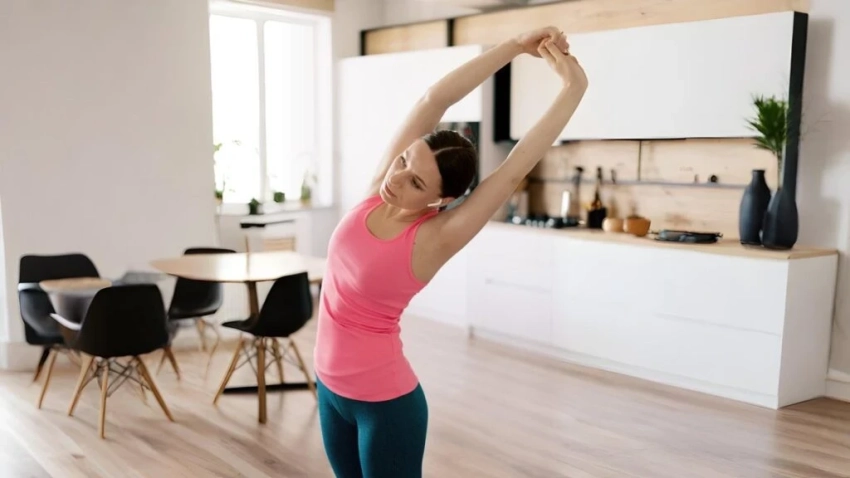 Отличный вариант — мягкая практика вроде приветствия Солнцу или неспешных наклонов и вращений.